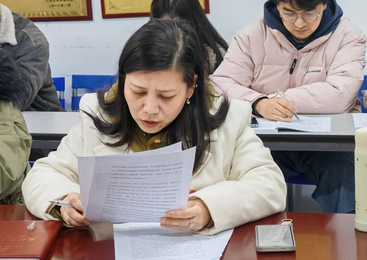 活动伊始,在庄严的会议室里,bv伟德国际1946教师党支部书记马君带领全体党员重温入党誓词。“我志愿加入中国共产党……随时准备为党和人民牺牲一切,永不叛党。”一句句铿锵有力的誓言,回荡在每一位党员耳边,唤醒了党员们入党时的初心与使命,激励着大家在新时代新征程中砥砺前行。