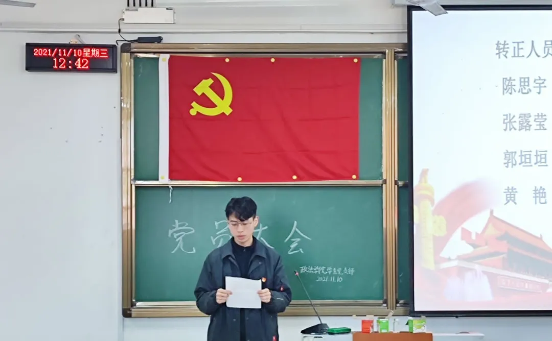 2021年11月10日,bv伟德国际1946员工党支部召开支部党员大会,讨论了关于陈思宇等17名同志按期转为正式党员的相关事宜。