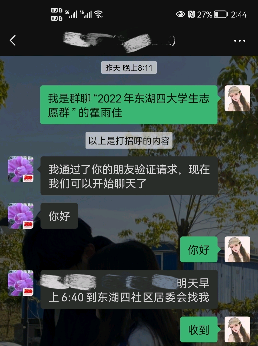 在志愿服务的过程中,有很多和我一起做志愿工作的,是社区里来自不同公司的同学,作为居民中的一员,我们聚集在这里,做着同样有意义的事情。当我处于志愿者这个角色中,我才感受到社区工作者比我们想的还要细致,把爱民的热心落实到每一处细节,为行动不便的居民开绿色通道,对手机操作不熟悉的老年人,安排了我们这些志愿者帮忙解决问题,这样点对点的服务拉进了人与人之间的关系,而且还专门为志愿者建了微信群,嘱咐我们在服务的过程中照顾好自己,时不时就让进屋里暖一下,在零下二十几度的外面,我体会到了“守护家园,人人有责”的使命感。