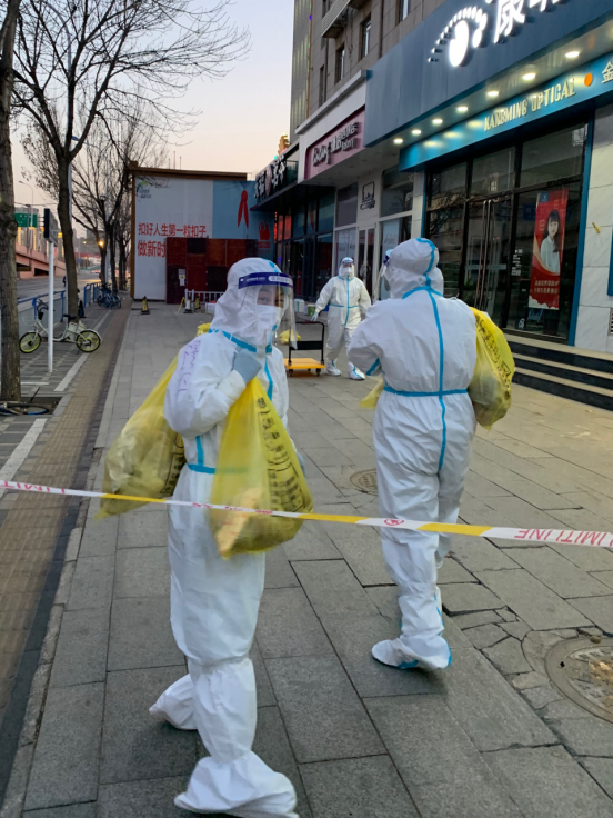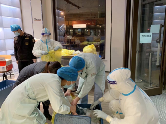服务感想:刚开始穿着防护服,带着N95口罩和面屏,加上拎着大包小包的东西爬楼梯,感觉十分沉闷,没过多久就气喘吁吁,汗也浸湿了衣服。后来就逐渐适应了防护服和这样的工作强度,虽然每次送餐还是会有点累,但也都不算什么了。因为查房要监督他们的体温状况,所以我都会很认真的询问,但一个个电话打过去多少有些枯燥,有时还会听到不耐烦的语气,就会感到有点心累。