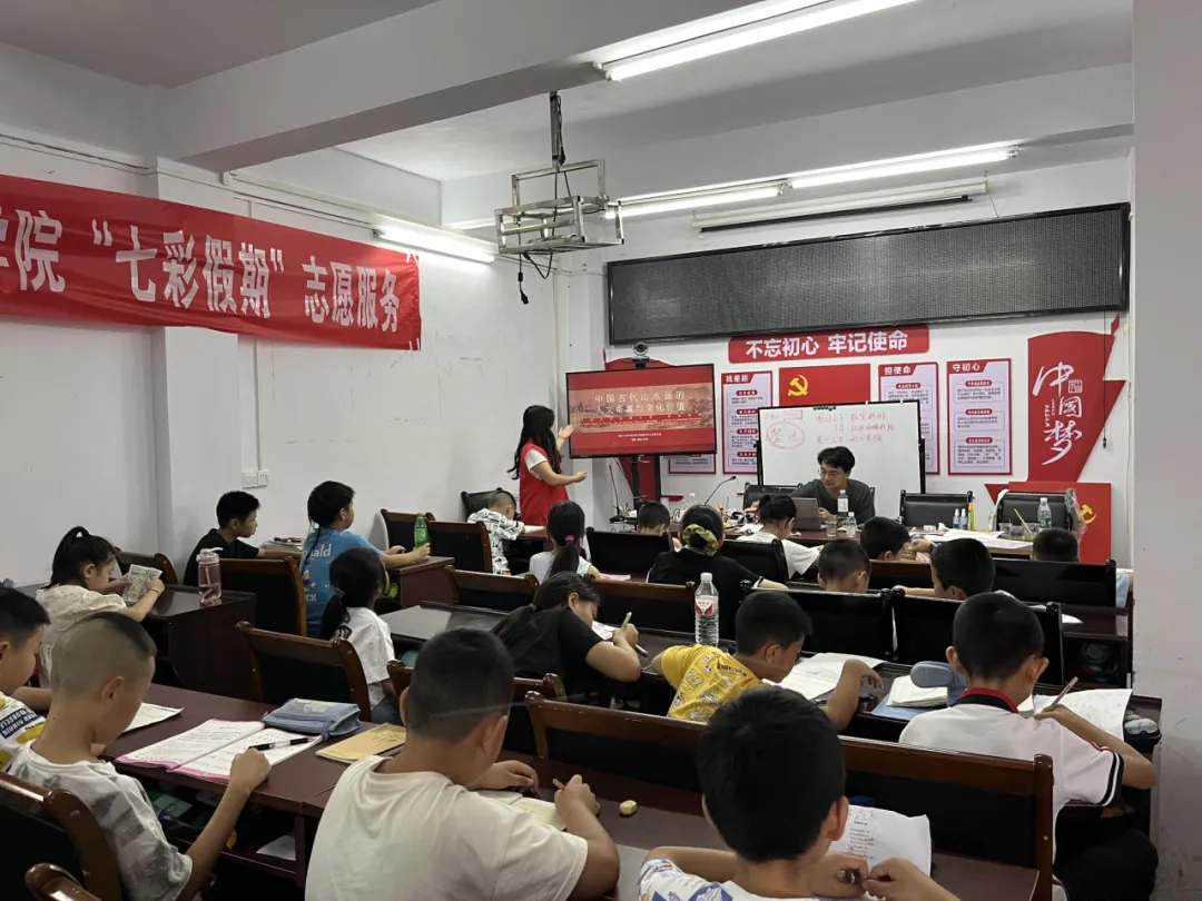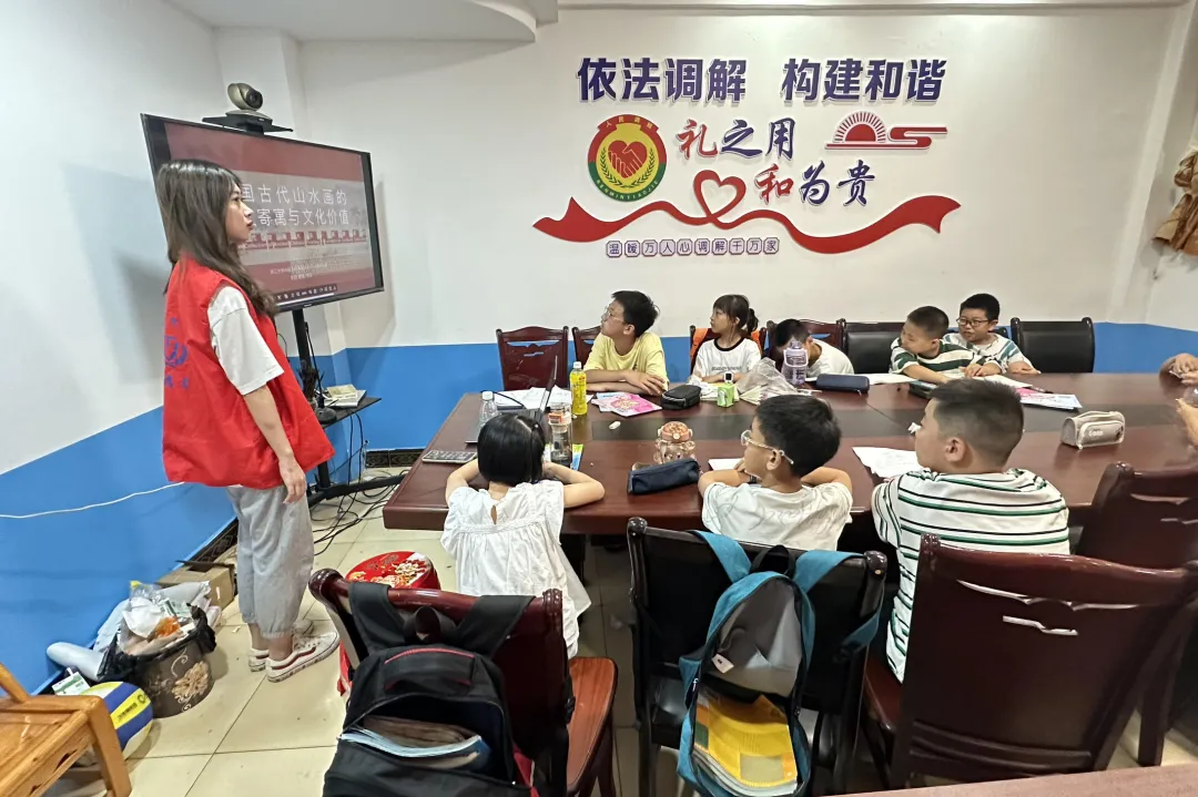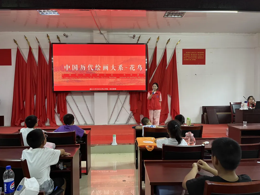 为了唤起同学们对中华传统文化的热爱,加深对中国历代绘画的了解,传承中华艺术的精髓,本次暑期社会实践期间,“青衿之志”志愿服务队总计开展八场绘画大系宣讲,以宣讲课件为主要内容,开展中国绘画的普及讲堂,以春风化雨、润物无声的艺术欣赏,将中国历代绘画大系的精神流入孩子们的心间。