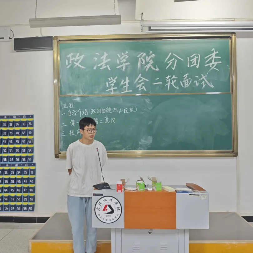 十年磨一剑,今朝试锋芒。台上,同学们自信大方地做着自我介绍;台下,部长、主席们的问题也是接踵而至。面对评委的种种问题,同学们并没有感到慌乱,从容不迫地表达自己的想法,或慷慨激昂,或娓娓道来。在本次招新面试中,各位部长们看到了24级同学们的热情与才华,也感受到新生同学们在用自己的方式诠释着对团学的热爱与执着。