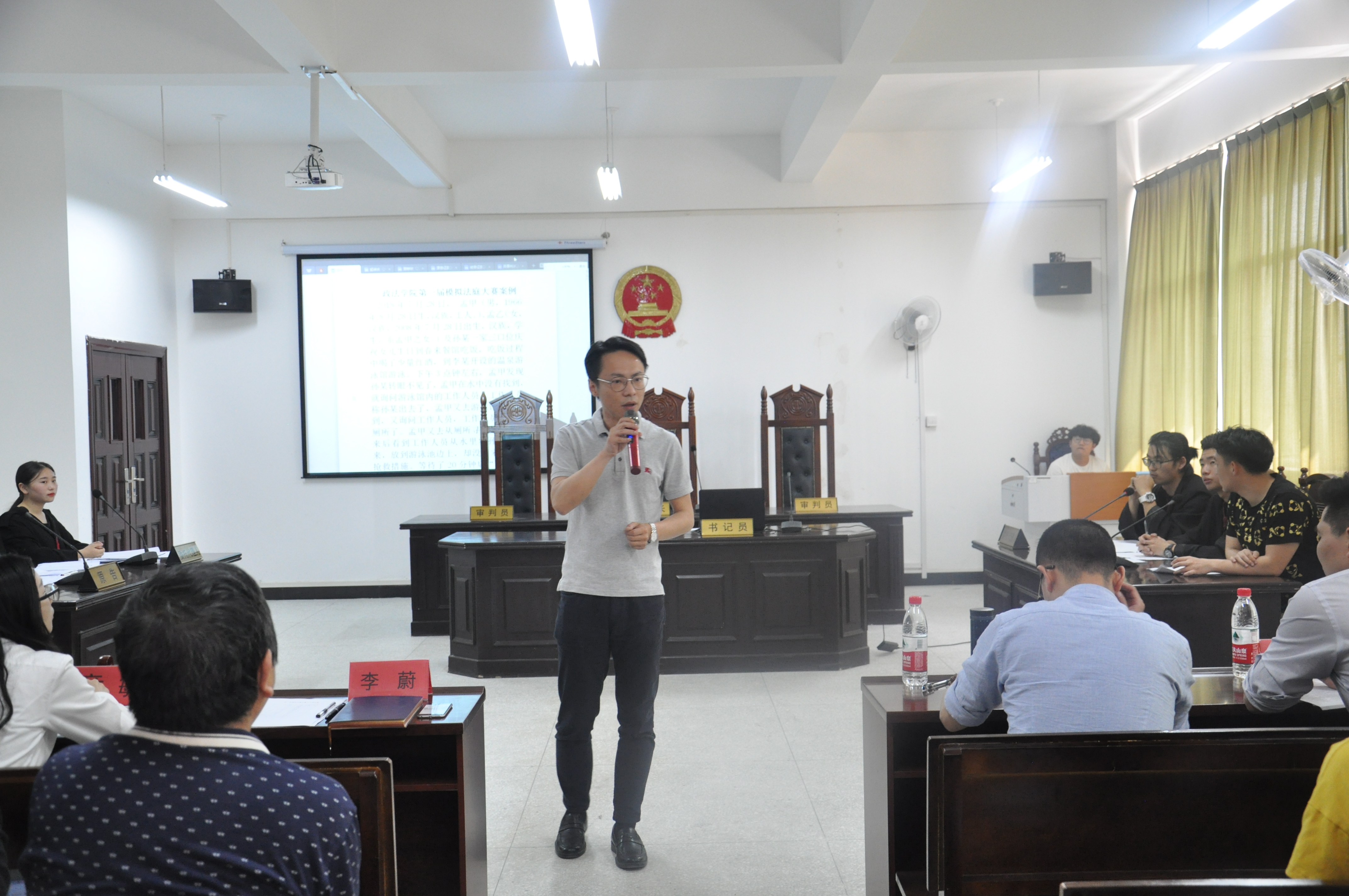 本次模拟法庭的案例为民事侵权纠纷,法官组由17级法学1班的同学担任,原告组由17级法学3班的同学担任,被告组由17级法学2班的同学担任。各班参赛选手准备充分,通过举证、质证、辩论、总结,呈现了一场完整的民事诉讼庭审。