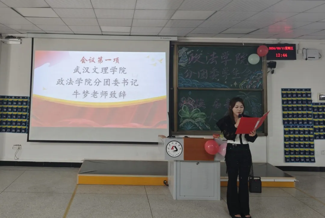 会议伊始,由bv伟德国际1946分团委书记牛梦致辞。牛梦老师首先回顾了过去一年团学所取得的成绩、付出的汗水和成长的回报。然后牛梦老师对上一届员工干部表达了衷心的感谢,对他们的无私奉献和所取得的优秀成绩表示肯定,并送上了祝福。她指出:作为员工干部,要扮演好师生之间进行沟通交流的桥梁和纽带,要坚定信念,勇于担当,团结协作,共谋发展,创新思维,开拓进取。希望bv伟德国际1946员工干部队伍能够继承团学的优良传统,在新时代,勇于创新、敢于担当,以实际行动践行“请党放心,强国有我”的青春誓言。“路虽远,行则将至;事虽难,做则必成。”让我们携手并进、共同努力,写下更加辉煌的篇章!