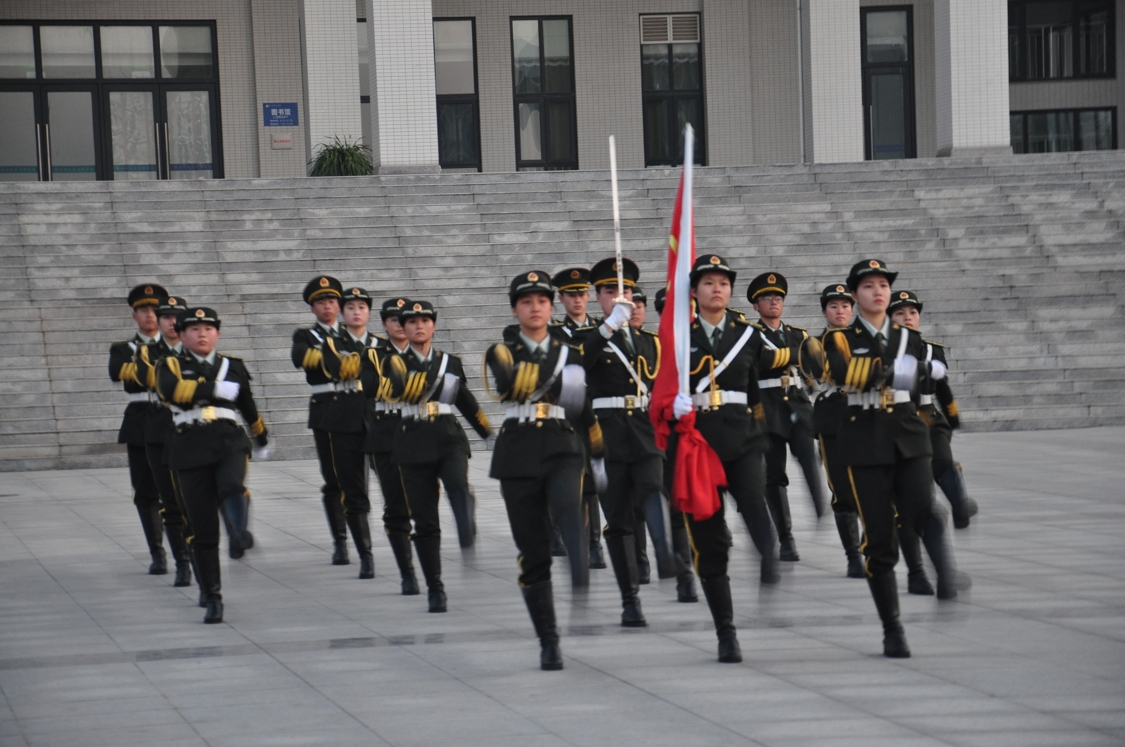 凛冽的寒风中,一腔红色热血点燃了每一个人。6:40主持人上台宣布升旗仪式正式开始,伴随着激昂、振奋的歌曲,国旗护卫队整齐划一,气势恢宏地护送国旗而来。铿锵有力的步伐,展现着铁血与刚毅。只刺云霄的银杆,让豪气冲天。全体师生在庄严的国歌声中,行注目礼。红旗飘扬,祖国的历史缓缓随之舒展在眼前,对祖国的自豪感也在心中默唱的国歌声中浮现。