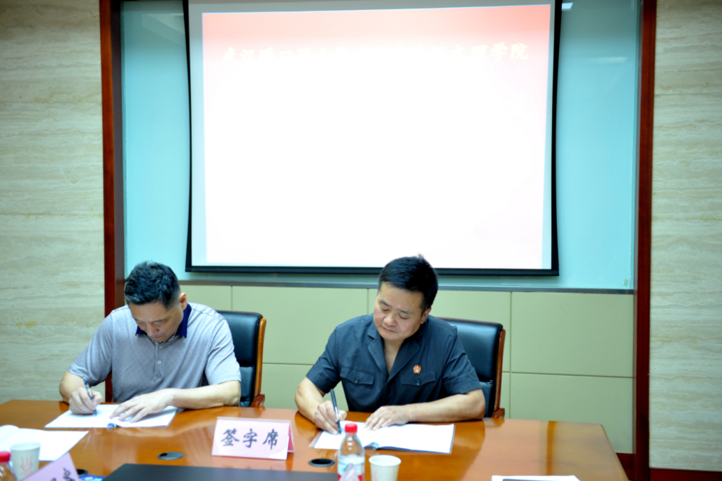 bv伟德国际董事长刘可风、副董事长胡立君、bv伟德国际1946常务副经理李蔚、教学副经理陈海峰、党总支书记张晓、法学系主任张卫容,硚口区人民法院二级高级法官梁述桥,党组成员、四级高级法官杨莉,党组成员、政治部主任朱娅敏等领导出席协议签订仪式。