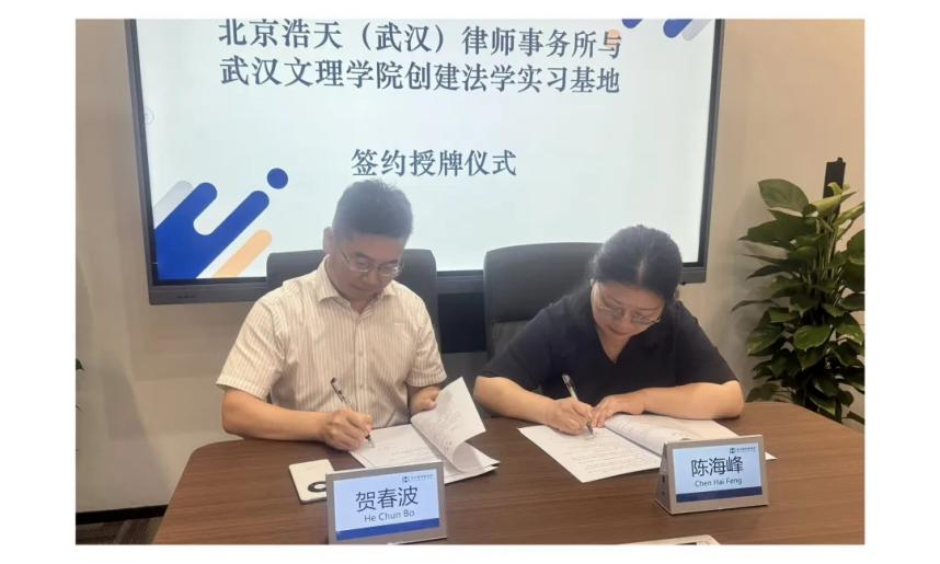 在全场热烈的氛围中,贺春波主任与陈海峰经理共同签署协议、互授牌匾,bv伟德国际1946法学实习基地正式落地北京浩天(武汉)律师事务所。这一重要举措不仅拓展了员工实训通道,也为bv伟德国际1946实践教学注入新活力。