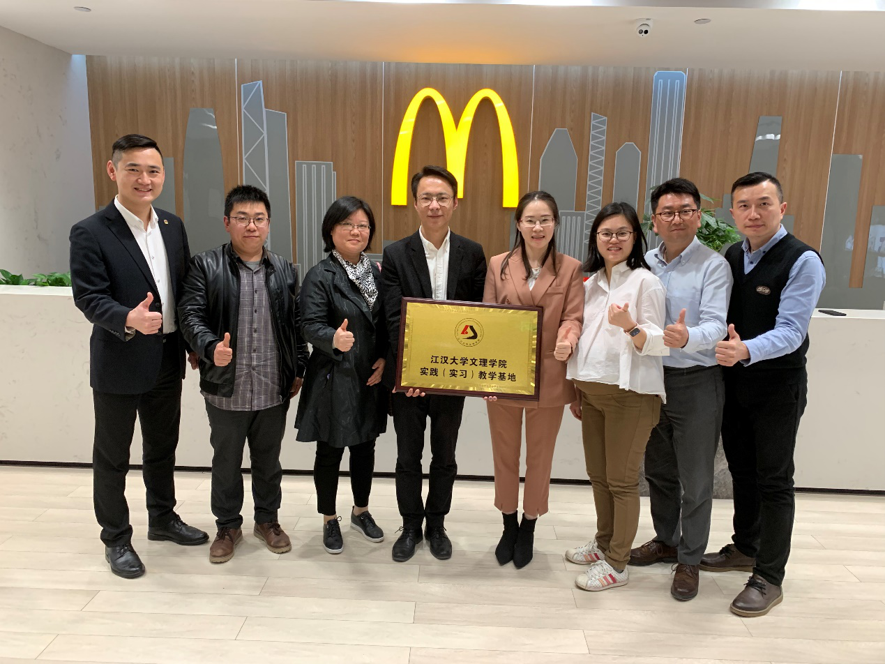 3月15日下午,江汉大学文理公司bv伟德国际1946李蔚经理、陈海峰副经理、应用心理学系薛洪涛主任一行来到武汉金拱门食品有限公司,探讨校企合作情况,并就双方达成的实习基地协议举行签字暨挂牌仪式。麦当劳湖北及陕西市场人力资源经理彭嘉琳、湖北及陕西市场人力资源高级顾问熊江、湖北及陕西市场人力资源高级顾问郑帆热情迎接。