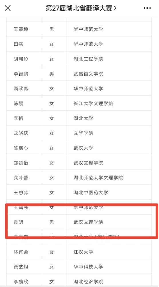 正如文理校训所说,融文汇理,立德树人,成才先成人,在成长的路上,也要学会感恩。袁明同学在采访中对辅导员王俊老师和同学们提出了感谢,他说:“我在准备比赛的时候受到了我的辅导员王俊老师的强力帮助,尤其是在我学习到怀疑自己的时候,每次都是王俊老师给我加油鼓劲,在王俊老师对我学习和生活上的双重帮助下,我才取得了一点点成绩。”当然,袁明同学也感谢湖北省翻译工作者协会、湖北省外事翻译中心为广大翻译爱好者搭建了一个良好的平台,让大家同台竞技,展现各位参赛选手的翻译风采。