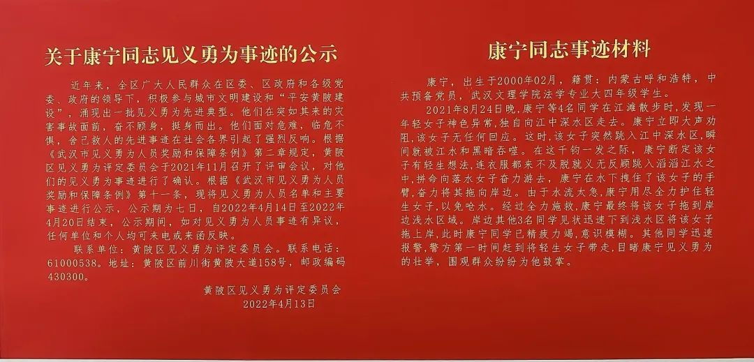 对于这次特殊的经历,康宁同学有话分享:“生命在大自然面前是脆弱、渺小的,我们一定要珍惜并且敬畏生命,活得有意义、有价值。”见义勇为,更需要见义智为,对于整个社会风气来说,见义勇为扬正气,古道热肠暖人心,是一笔宝贵的财富。
