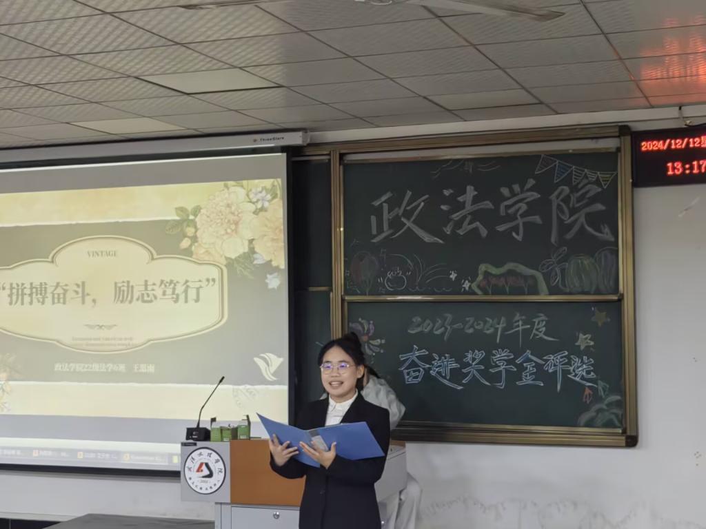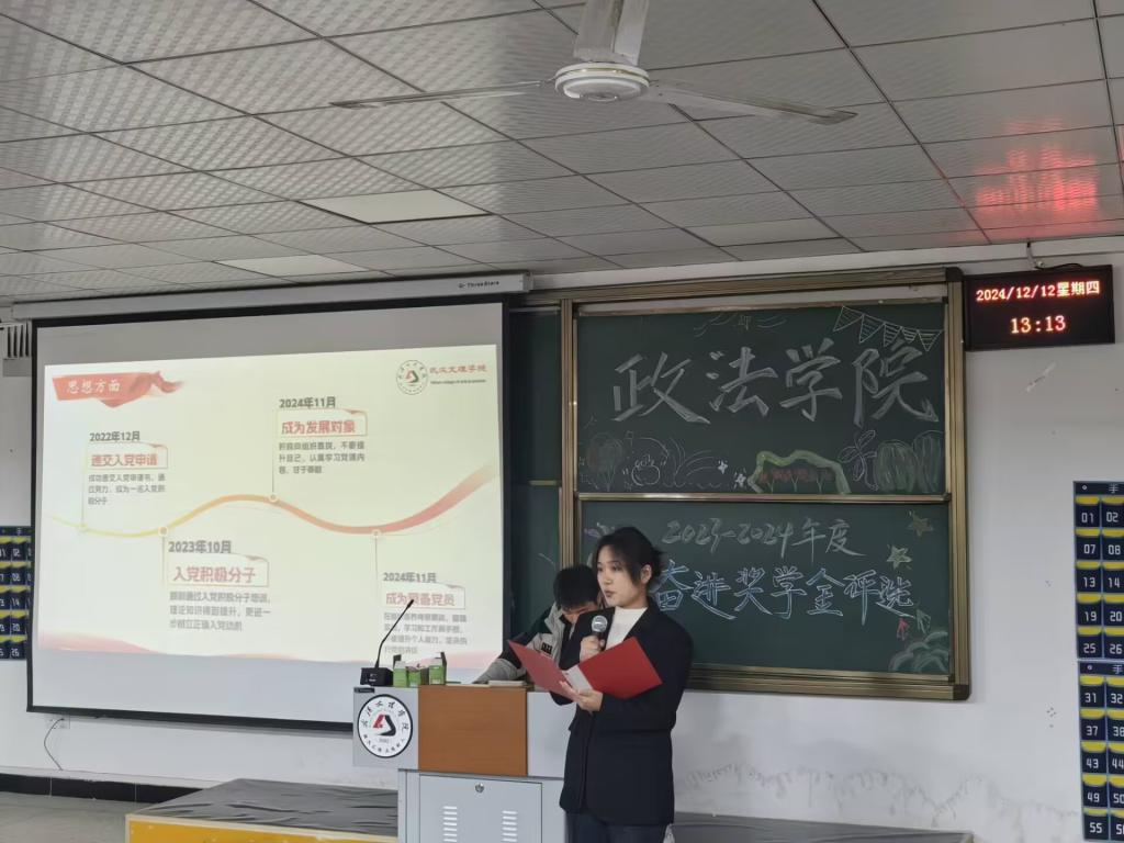 为激励德才兼备的政法学子,秉持自强不息之信念,砥砺努力拼搏之精神,坚守崇德向善之品德逐梦前行。2024年12月12日12:30,bv伟德国际1946于4-322隆重举办2023-2024学年奋进奖学金评选活动。出席本次活动的嘉宾有:bv伟德国际(原江汉大学文理公司)2008级优秀员工孙凡、bv伟德国际1946常务副经理陈海峰、党总支书记兼行政副经理程茜、法学系系主任罗平、公共管理系系主任马君、法学系副主任吴蕾以及各位教职工老师。