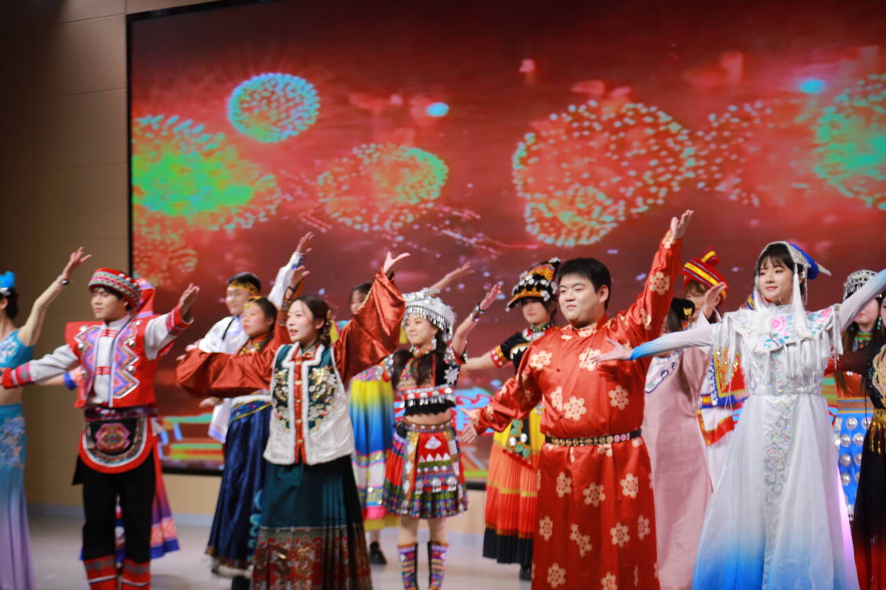 公司党总支带来走秀和舞蹈《民族团结繁星聚》,各民族欢聚起舞将现场欢腾氛围渲染至极致。