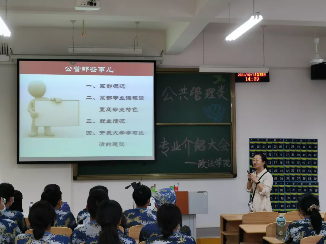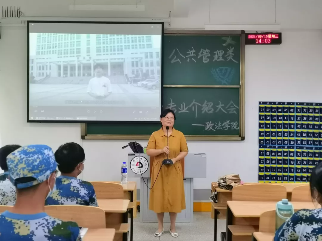 桂馥兰香,秋光如许。为帮助大一新生尽快融入大学的学习生活中,增加新生们对所选专业的了解,进一步做好学业规划,2021年9月15日下午14:00在4-421和4-422分别召开了“公共管理类专业介绍会”和“法学专业介绍会”。