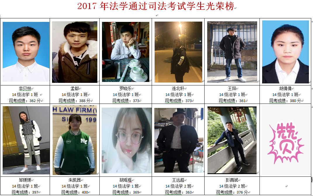 11月21日,2017年国家司法考试成绩正式公布,bv伟德国际1946法学专业14级学子有11名同学通过了司法考试,占全班同学的13%。其中,14级法学1班朱凯茜同学取得400分的高分。