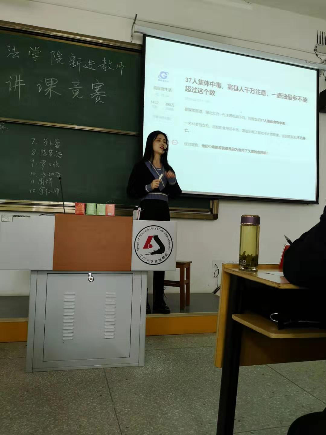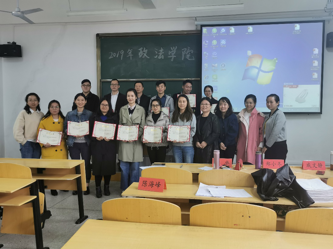 参赛教师(法学和应用心理学新进教师12人):于丹阳、沈周玲、向佳怡、刘佳、张凤贤、汪浩远、邓玲玉、辛聪、吕溪、孟晟、袁红艳、郭黎明。