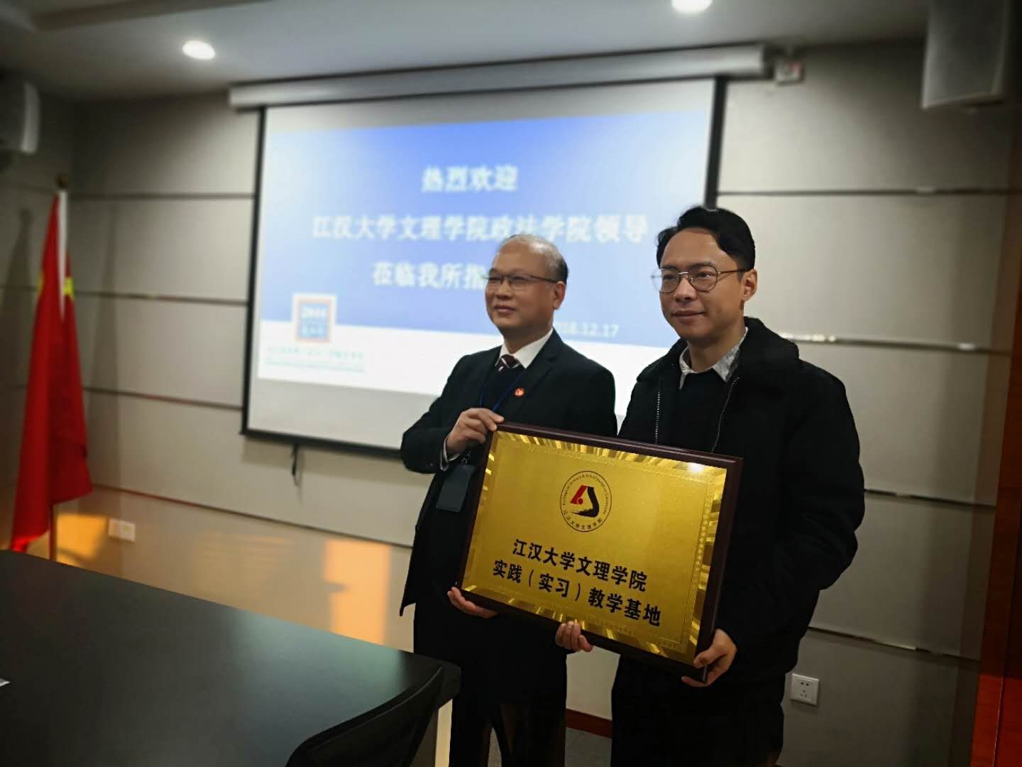 12月17日下午,江汉大学文理公司bv伟德国际1946李蔚经理、陈海峰副经理、张卫容主任一行来到北京德和衡(武汉)律师事务所,考察员工实习情况,并就双方达成的实习基地协议举行签字暨挂牌仪式,律所党支部书记孙健律师、律所主任邱启雄律师及全体在汉合伙人热情迎接。