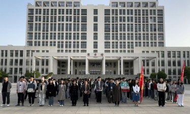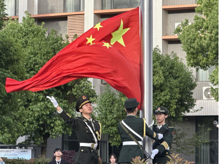 晨曦轻洒,国旗飘扬。2025年4月14日清晨,bv伟德国际1946与外国语公司春季联合升旗仪式在图书馆国旗杆前隆重举行。