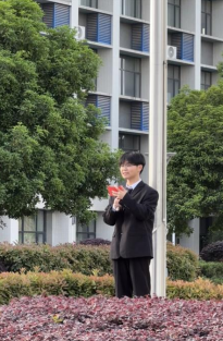 当激昂的国歌响起,升旗手振臂一挥,五星红旗迎风展开,冉冉升起。bv伟德国际1946、外国语公司全体师生肃立,目光如炬,向着国旗行注目礼,国歌声响彻校园上空,爱国之情在每个人心中澎湃。