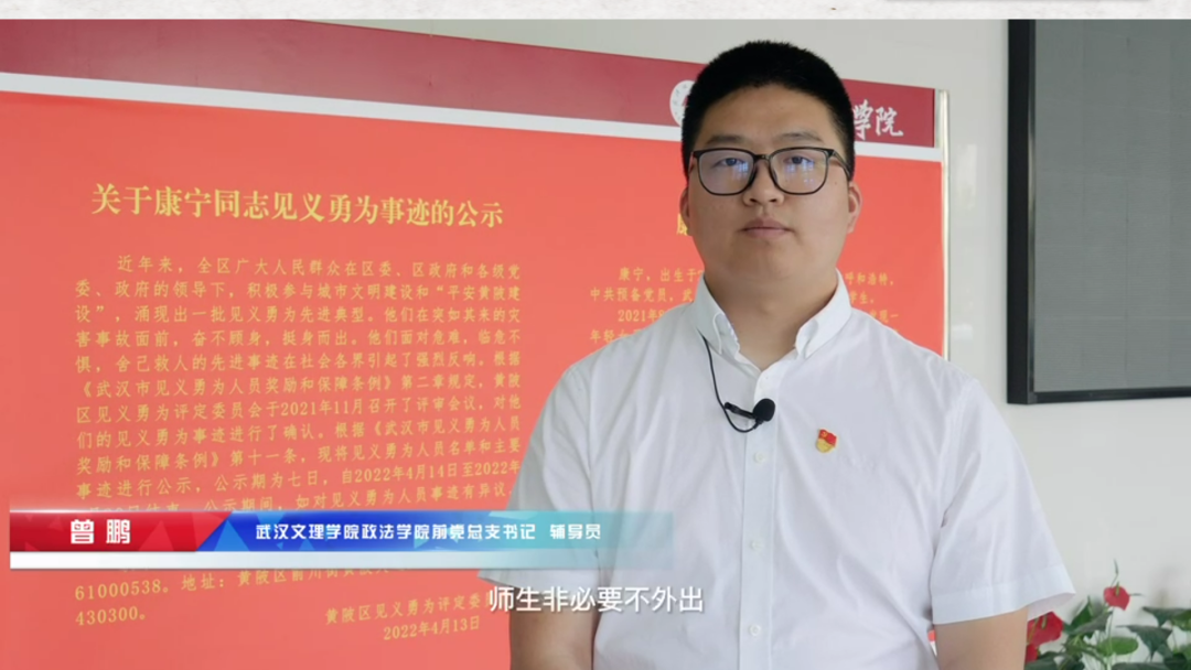 为表彰康宁同学,宣扬浩然正气,无私奉献的优秀传统美德。2022年6月17日下午15:30,在bv伟德国际19栋101举行了由中共bv伟德国际委员会主办,bv伟德国际1946承办的黄陂区“见义勇为先进个人”荣誉称号颁授仪式。出席本次活动的嘉宾有黄陂区委副书记、区政法委书记胡艺、黄陂区人大常委会副主任万红、黄陂区政法委常务副书记李荣奎、黄陂区教育局局长黄淑萍、武湖街书记程壮、黄陂区宣传部副部长胡琪娟、团区委战线综合部部长李德静、黄陂区政法委一级主任科员谢延延、武汉和润集团党委书记张芾、bv伟德国际董事袁戴茗、武汉文理公司党委书记杨知勤、董事长刘可风、副董事长艾永循、副董事长胡立君、党委副书记赵学迅、以及公司相关部门负责人、各公司党总支书记、各公司分团委书记、bv伟德国际1946老师和员工代表。