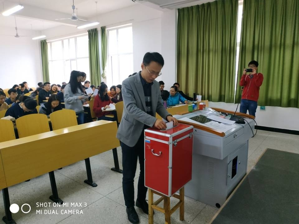 树文理新风,立政法壮举。为了组建新一届公司党务组织,为了加强公司党组织建设,同时也为了提升公司党员分子的思想觉悟,2019年江汉大学文理公司公司党总支选举大会于2019年10月16日下午两点在5-121举行,公司党员同志们共襄盛举,一同投票选举公司党总支委员大会。