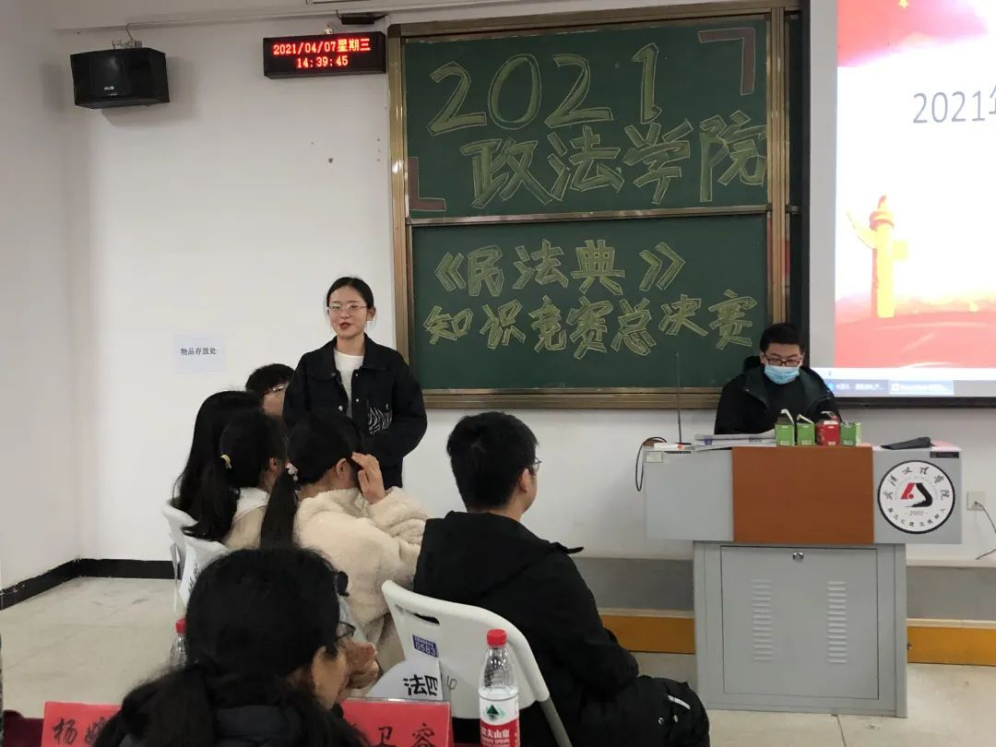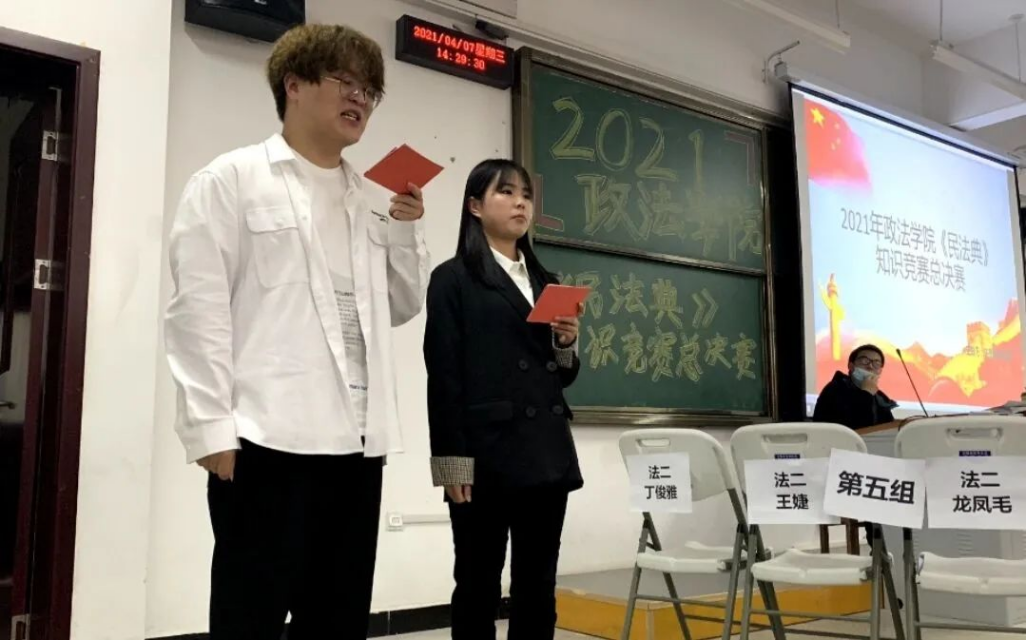 春雨绵绵,在这略带寒风的日子中我们迎来了民法知识竞赛总决赛。在初赛中脱颖而出的十五名同学也面临着新的挑战。据说这次的出题的老师们为了增加比赛的强度。在题目的设计上也增加了难度。因此,这次比赛的激烈程度也可以预见了。至此,法学系于2021年4月7日在5-123举行了《民法典》知识竞赛总决赛。