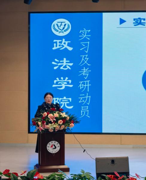 大会第二项,bv伟德国际1946法学系理论法学教研室主任江莲老师作法学专业考研动员。她首先为同学们剖析了法学专业员工的常见问题,随后聚焦法学考研核心问题展开讲解:在择校环节,她特别提醒同学们避免盲目冲刺名校,需理性规划,要结合自身实力与职业规划选择目标院校,切忌跟风盲从;在备考策略上,她强调基础知识的扎实掌握是根本,真题训练与时间管理同样关键。她建议同学们制定科学的复习计划,分阶段推进,保持良好心态,避免焦虑内耗。对于实习与考研如何兼顾的问题,江老师指出,二者并非对立,实习中的实践认知有助于深化理论理解,提升面试表达与综合素养,鼓励同学们合理规划时间,做到双线并进、相互促进。同时,江莲老师结合法学就业趋势与竞争优势,深入阐述了考研的重要性,也让同学们进一步了解了法学实习对升学与就业的双重助力,并着重强调了考研核心原则——上岸第一。