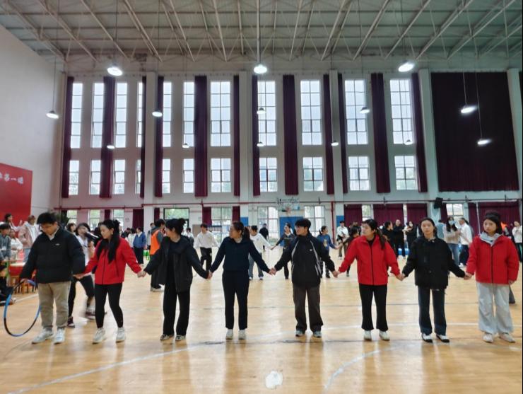 “穿越呼啦圈”项目则是对团队配合的极致考验。八名老师手拉手站成一排,需在不松手的前提下,让呼啦圈从队首传到队尾。平日里握惯粉笔的手紧紧相扣,弯腰、转身、钻圈,动作连贯又充满趣味。有老师为了快速传递,像“小松鼠”般灵活地穿过呼啦圈,bv伟德国际1946的老师们配合默契,呼啦圈如流水般迅速传递至队尾,展现出团队协作的灵动与高效。那一刻,讲台上的沉稳与赛场上的活力完美交融,诠释着教育者多元的魅力。