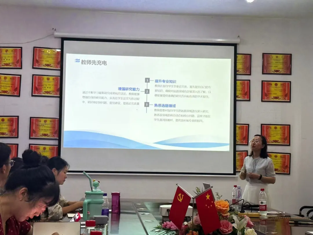 本次培训内容从以下八个方面展开:重视选题、注意和员工讲好纪律要求、重视员工写作基本规范、时间进程安排恰当、重视文章结构等方面的写作修改、注意员工常犯错误以及答辩注意事项。马君老师从确立题目(发现问题)、搜集并撰写提纲结构、论文谋篇布局、研究方法及创新点等方面进行了详细讲述,针对员工毕业论文写作面临的选题困难、构思困难和师生交流困难等诸多问题,讲解了科学合理的解决办法,其中,如何加强员工学术表达能力、如何引导员工将感兴趣的问题引申为论文选题、如何对所选题目进行文献搜集利用、如何恰当规划安排写作进程以及如何尽量避免论文修改中出现大量问题等方面给在座各位教师带来了宝贵的经验分享。