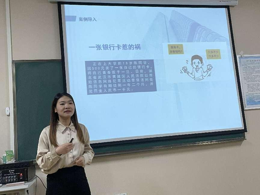 其中,汪慧老师图文并茂、形式新颖,以启发式、探究式方式教学,循循善诱,将枯燥的刑法学罪名——帮助信息网络犯罪活动罪,生动形象地呈现在评委和听众面前,让人不由得为之叫好。经过她的一番精彩演绎,台下的观众仿佛经历了一场深刻的普法活动,迅速抓住了“帮信罪”的要领。
